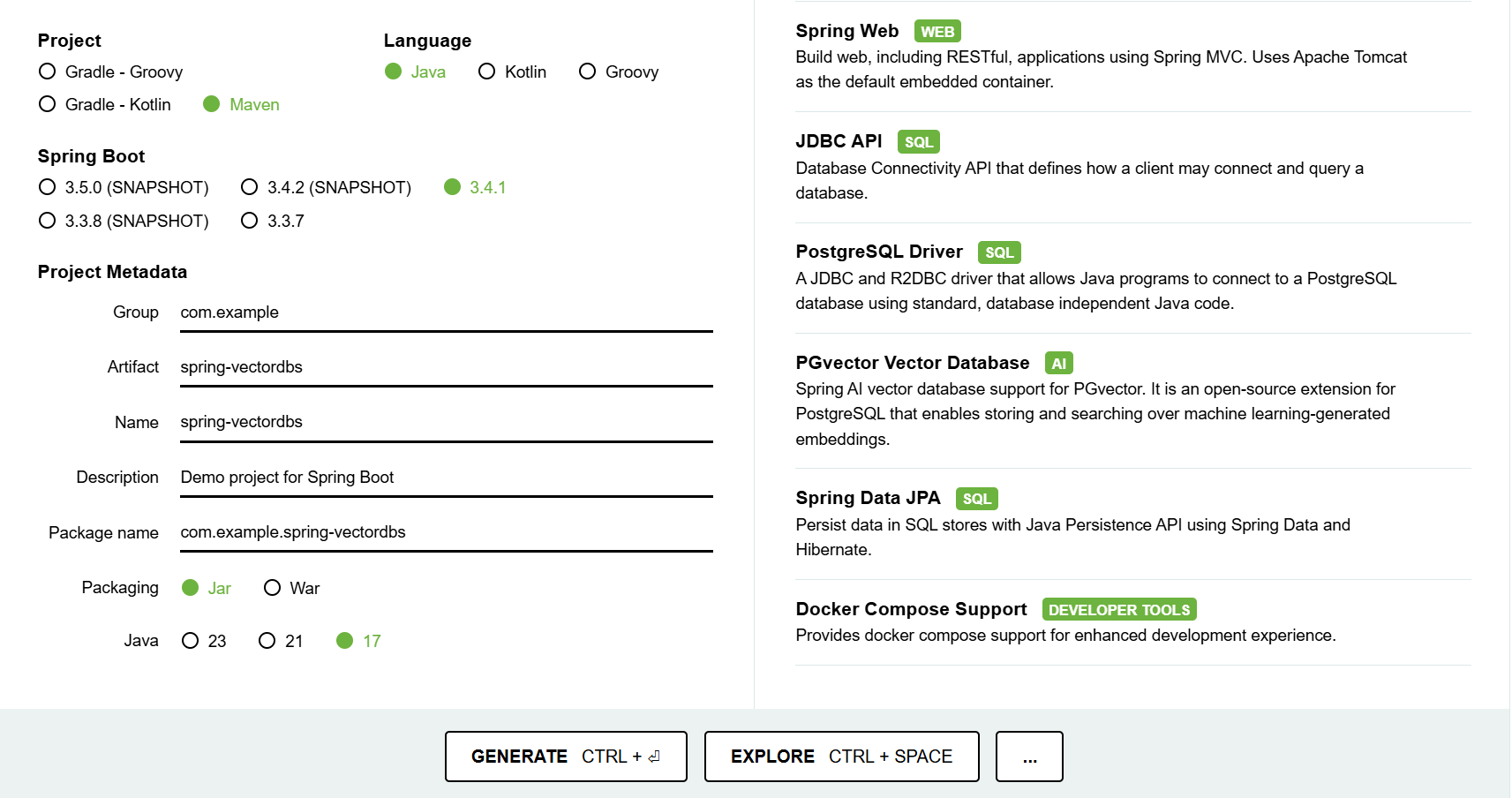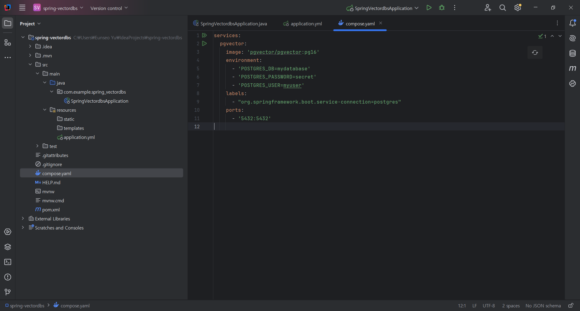 프로젝트 개요본 글은 Local 환경에서 구현된 연습용 프로젝트로, SpringBoot와 PostgreSQL(pgvector) 그리고 OpenAI API를 활용하는 것에 중점을 두었습니다. 1. Docker 설치 및 compose.yaml 파일 작성pgvector image를 pull 받도록 접근하는 yaml 파일을 작성한다. 2. pgvector/pgvector image pullDocker Hub에 올라와 있는 pgvector image를 내 PC에 pull 받은 후, docker compose up 과 같은 명령어 입력 시 Docker Container가 생성되고 내부에서 image가 실행된다. (*굳이 compose.yaml 파일을 작성하지 않고, 수동으로 image를 pull 받아도 상관없다.)..