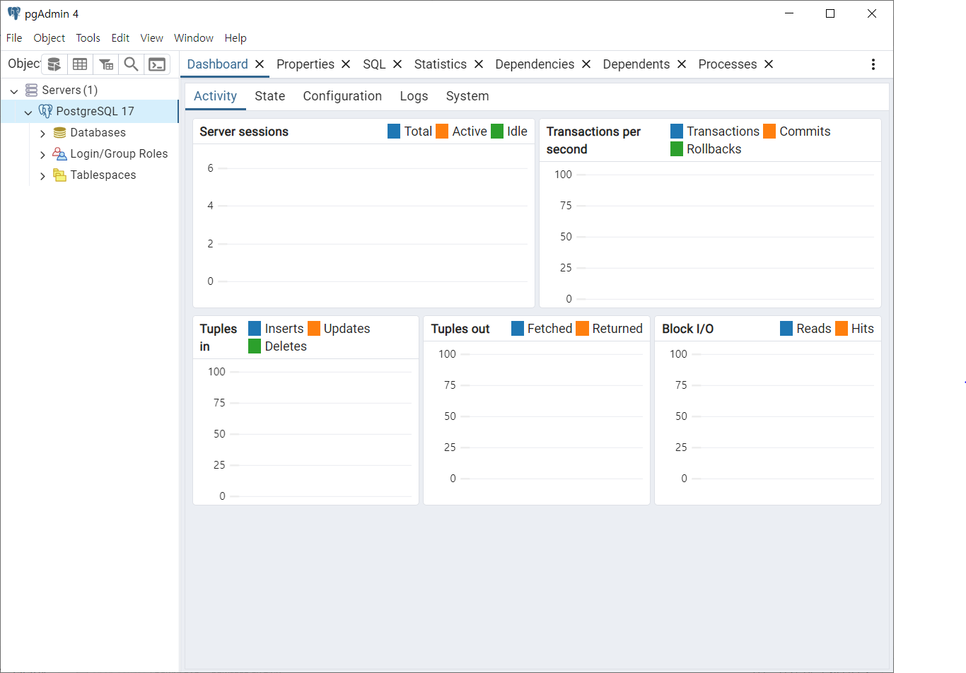 pgAdmin 4가 설치 된 것을 확인하고자 실행하면 다음과 같은 화면 출력