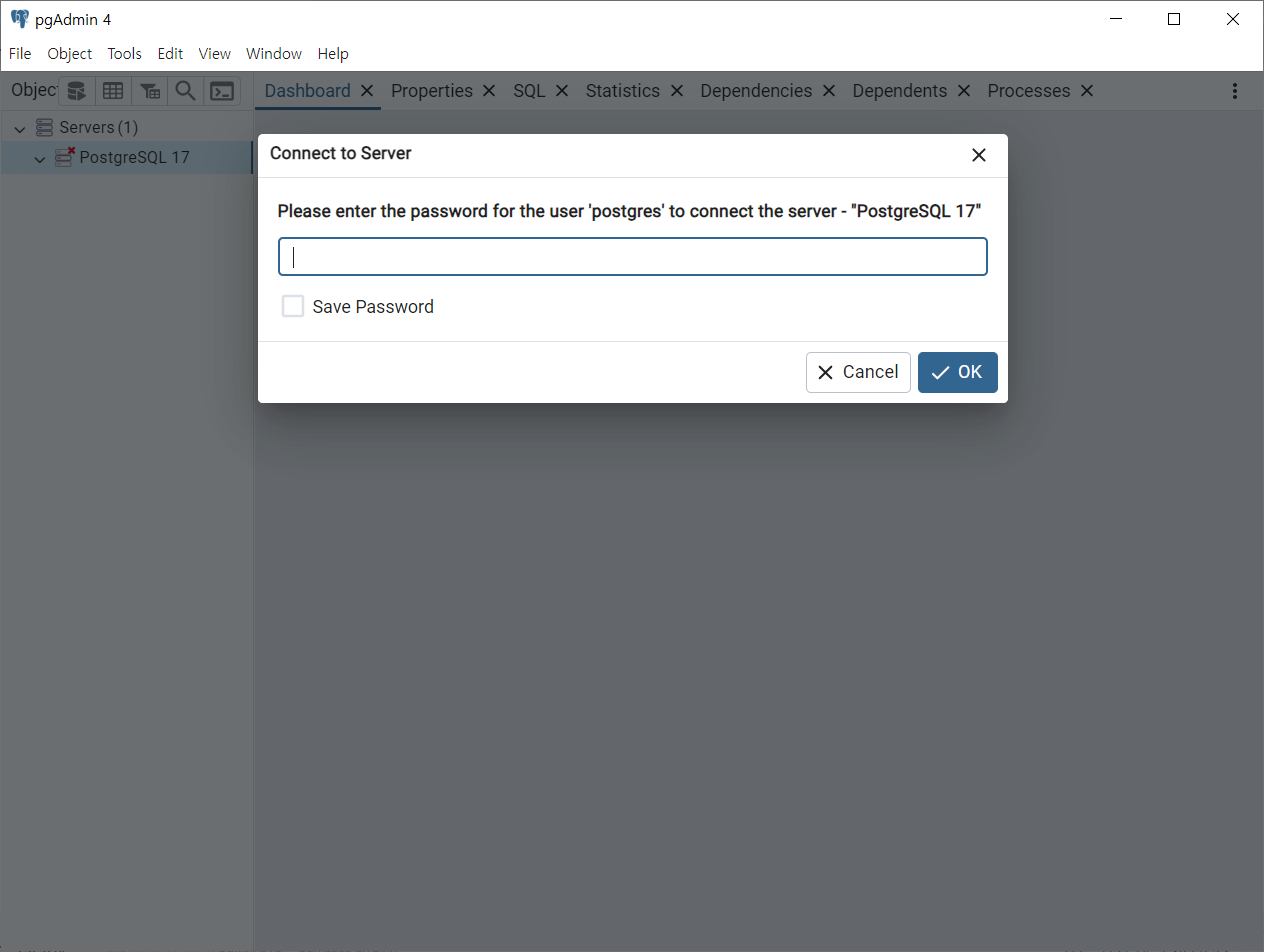 PostgreSQL의 DBMS인 pgAdmin4 사용을 위한 설치 진행
